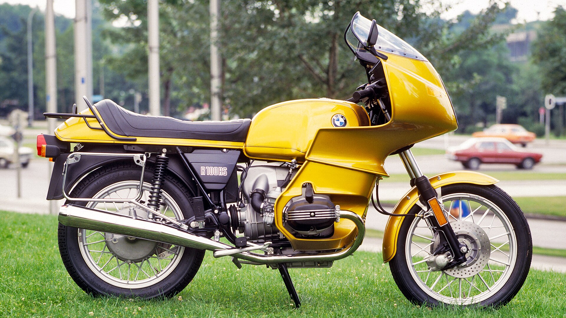 De BMW R 100 RS is de eerste productiemachine met een in de windtunnel ontwikkelde volle kuip. Naast aerodynamische eisen ging het bij deze ontwikkeling vooral ook om bescherming van de rijder tegen weer en wind. Bovendien is de R 100 RS de eerste BMW met een volle liter cilinderinhoud. Met een topsnelheid van 200 km/h rijdt deze machine in de voorste gelederen en - in tegenstelling tot de concurrentie - kan de rijder achter zijn volle kuip heel ontspannen rechtop blijven zitten. En daarmee ontsluit BMW Motorrad een geheel nieuwe klasse: sportieve reis toermachines.